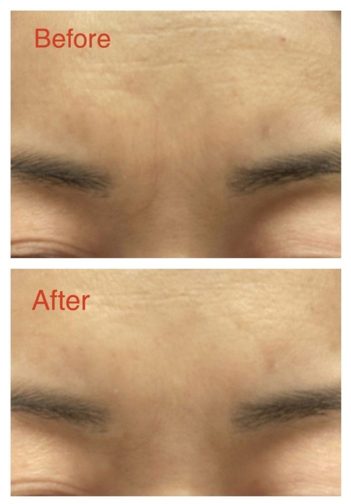 眉間は皮膚が硬いため、美容成分(コラーゲン・フラーレン・ヒアルロン酸・レチノイン酸他)を含んだシートを睡眠中長時間貼ることで深いシワに効果的です✨